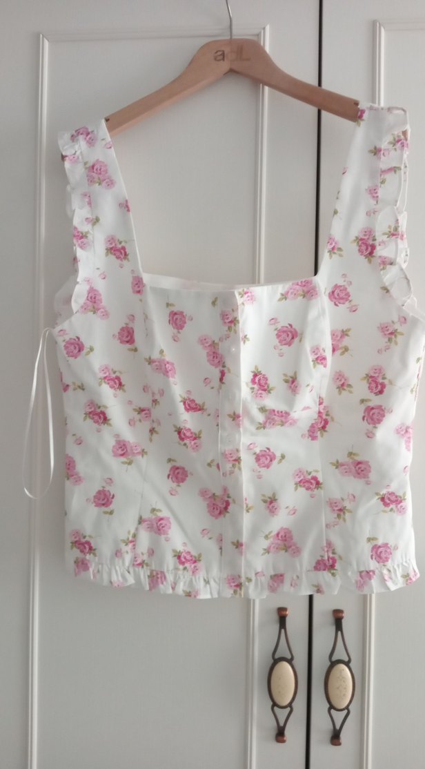 Pembe pastel tonlarında, çiçek desenli, midi boy, oturan kesim emzirme Askılarda ve etek ucunda fırfır detayları bulunur.