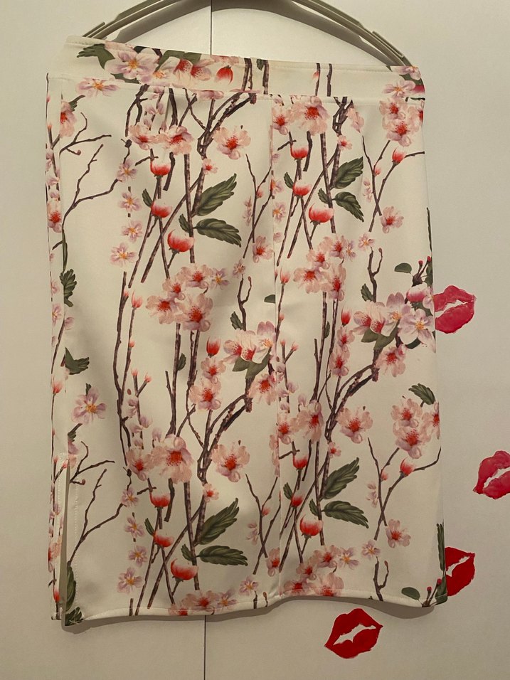Pembe renkte, çiçek desenli midi boyda, dökümlü ve kalem tasarıma sahip sentetik kumaştan etek. Günlük kullanım için uygun, regular fit.