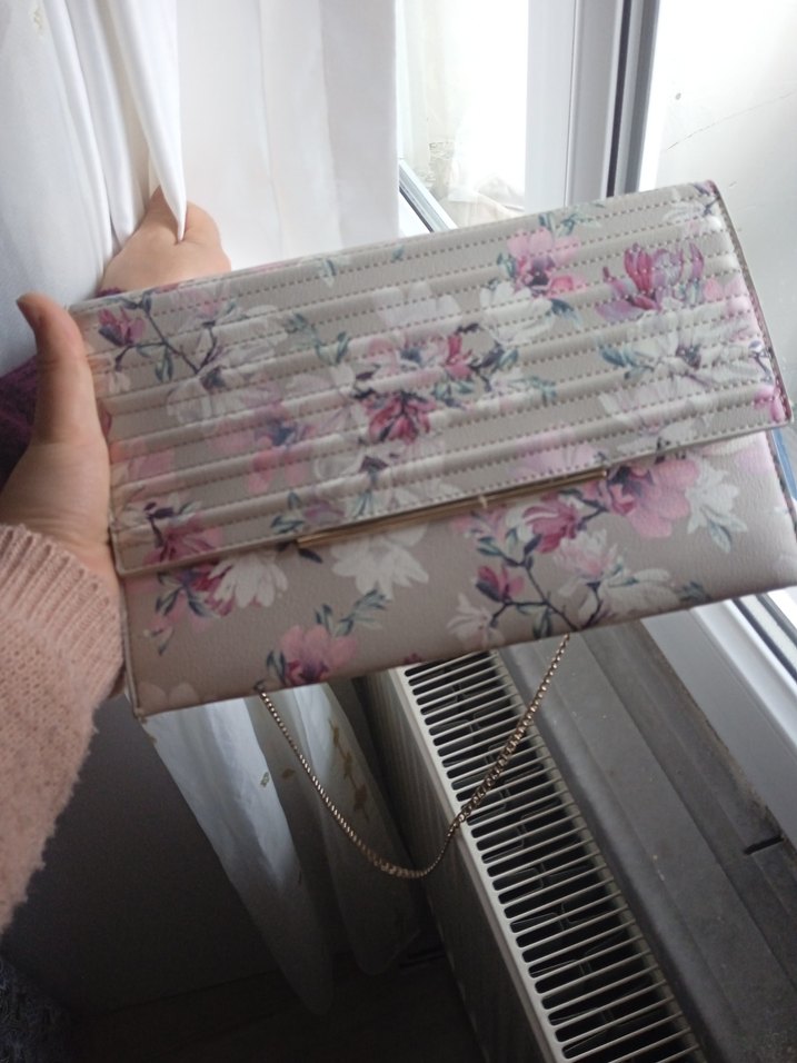 Pembe renkte, sentetik kumaştan yapılmış, pilili ve çiçek desenli kadın çantasıdır. Bohem tarzıyla günlük kullanıma uygundur.