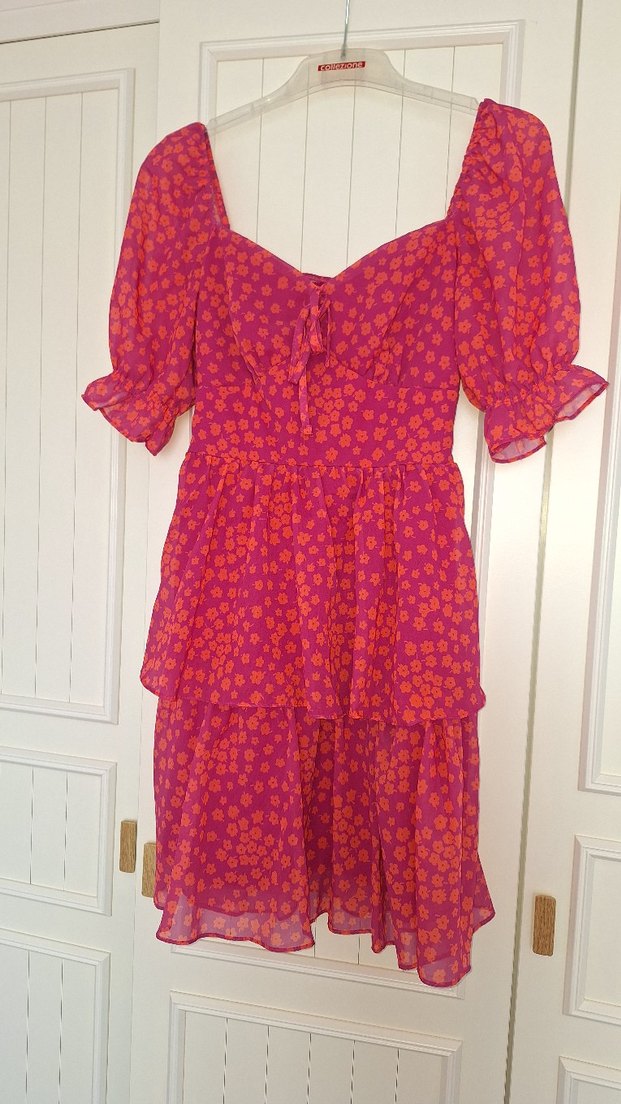 Pembe Çiçekli Şifon Elbise
