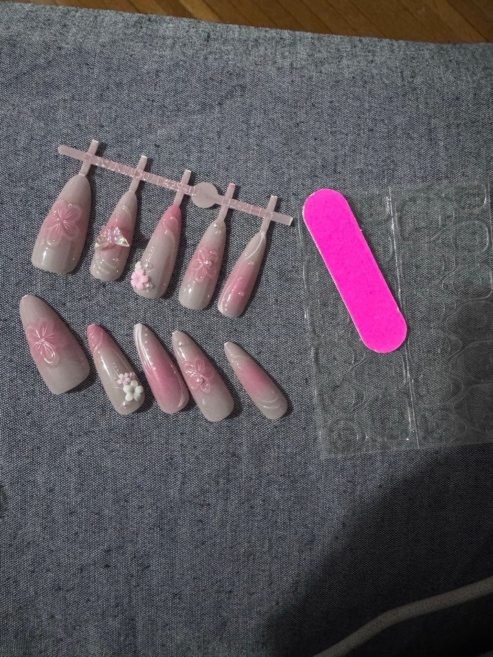 Pembe Çiçekli takma tırnak
