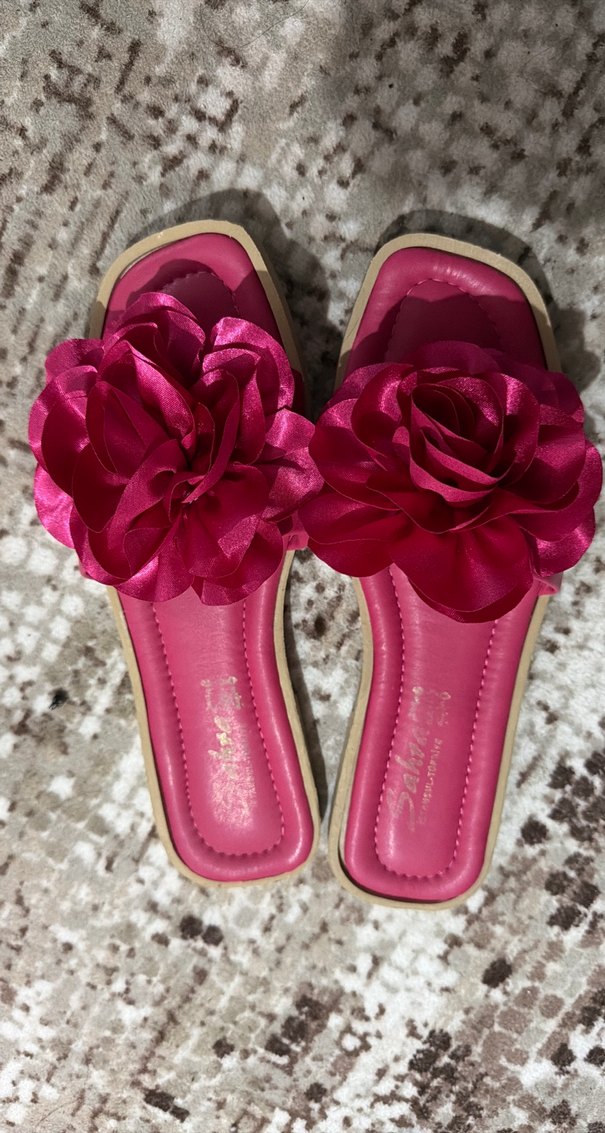 Pembe terlikler, büyük çiçekli volan detaylarıyla bohem ve renkli bir şıklık sunar. Ayagima kucuk geldigi icin hic giymedim sifir