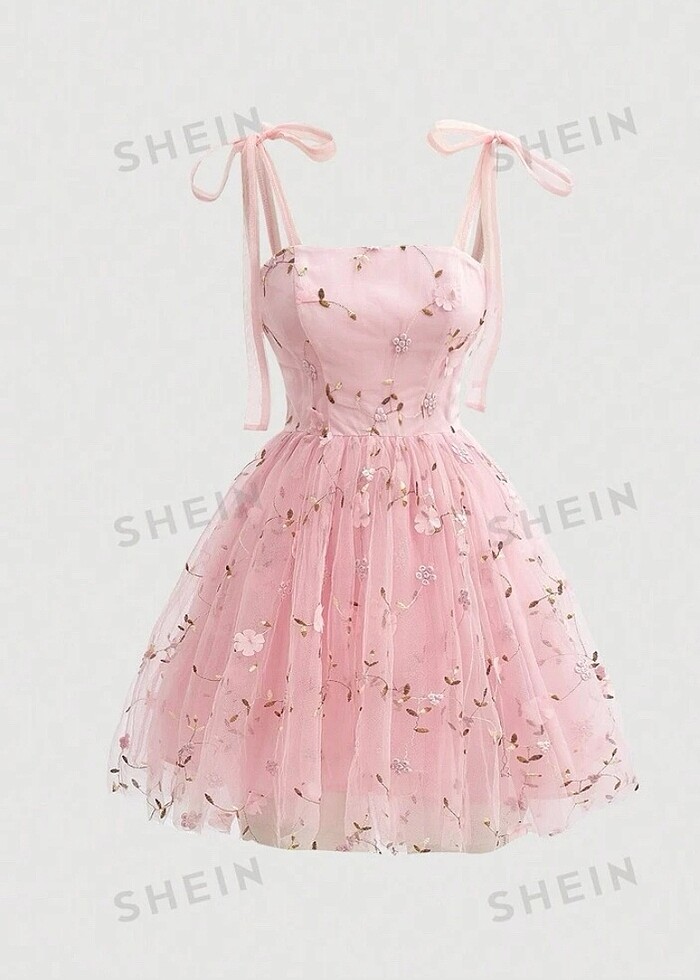 Pembe Çiçekli Tül Elbise Shein Mezuniyet Fairycore Coquette