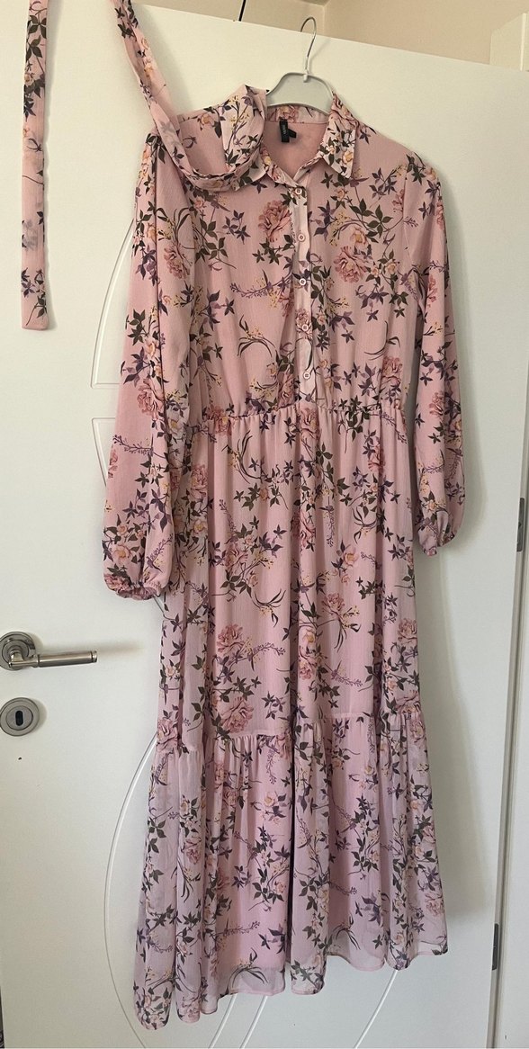 Pembe Çiçekli Uzun Bohem Elbise