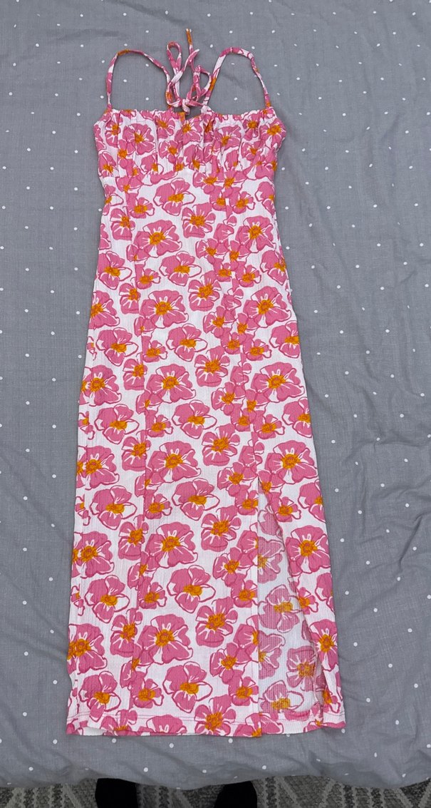 Pembe Çiçekli Uzun Bohem Elbise