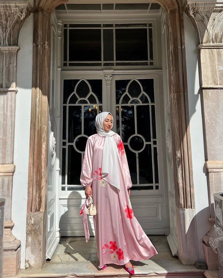 Pembe Çiçekli Uzun Salaş Elbise