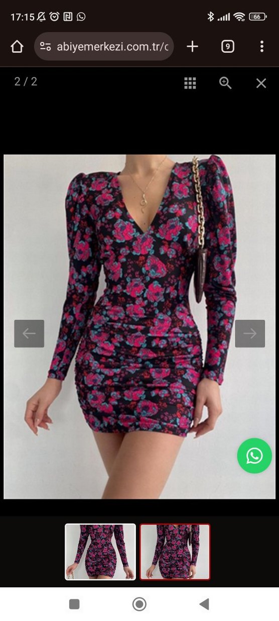 Dar kesim kısa elbise, uzun kollu, V yaka ve koyu pembe çiçek desenli dantel detaylarla romantik akşamlar için uygundur.