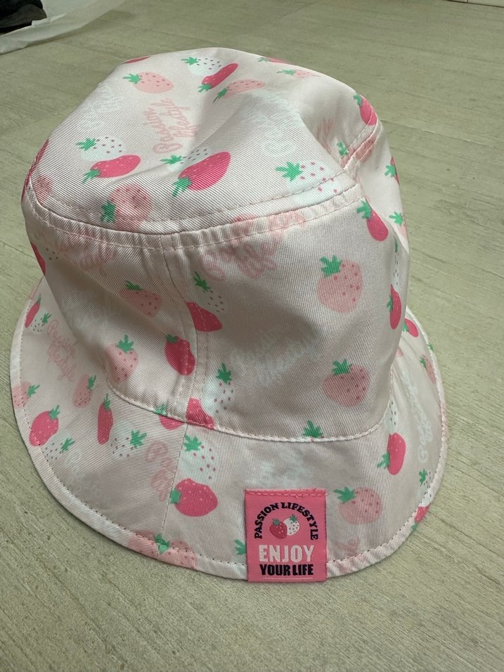 Pembe Çilek Desenli Çocuk Şapkası