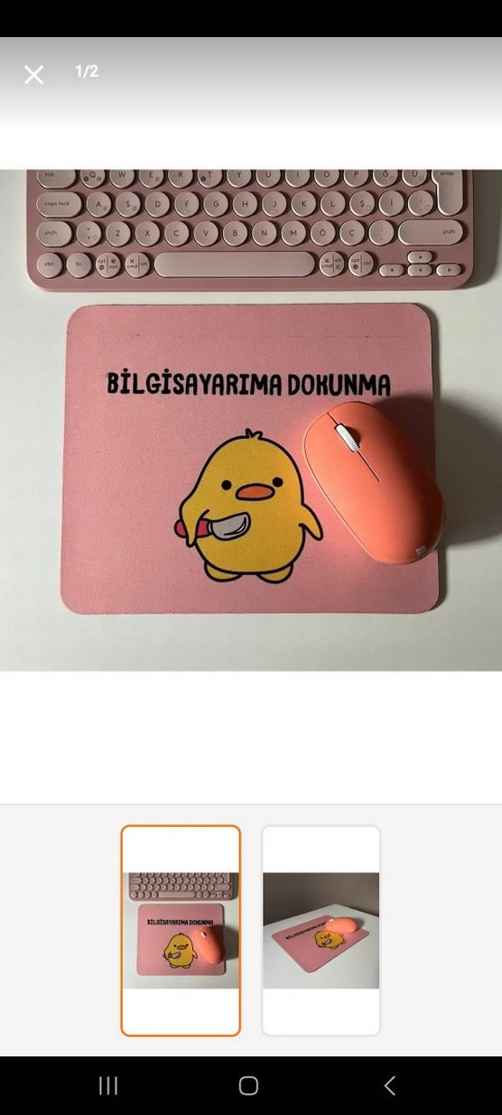 Pastel pembe renkli mouse pad, sevimli tavuk görseli ve 'BİLGİSAYARIMA DOKUNMA' yazısı içerir. Hassas kontrol için pürüzsüz yüzeye sahiptir.