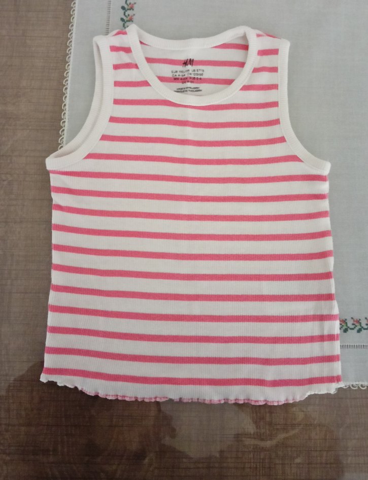 Yumuşak ve nefes alabilir kumaştan, pastel pembe çizgili beyaz çocuk atlet.