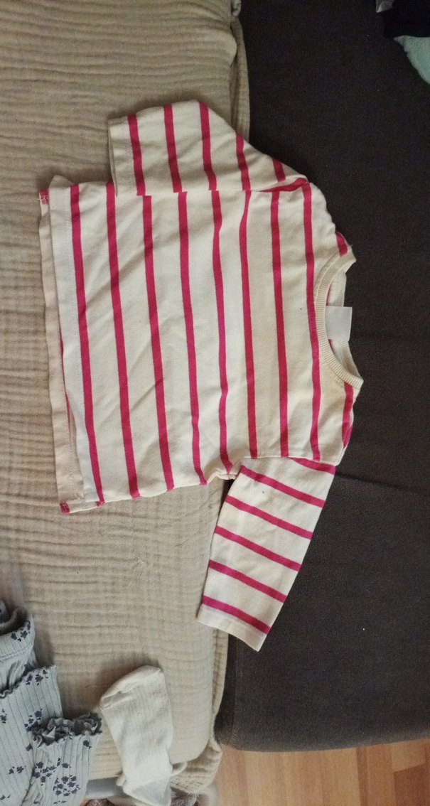 Pembe çizgili, uzun kollu ve tekne yakalı sweatshirt. pamuklu kusuru yok 68 cm