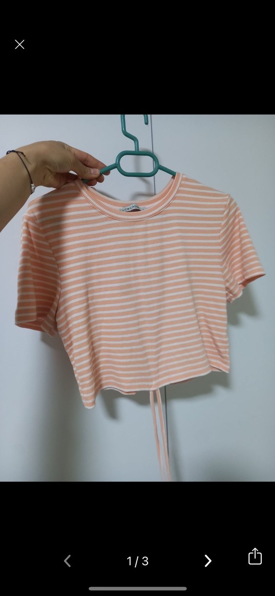 Kısa kollu, yuvarlak yaka ve pembe-beyaz çizgili, vücuda oturan crop top. Yumuşak sentetik kumaştan, rahat ve şık günlük kullanım için uygun. Likralı s m l her bedene olur belden bağlanabilir ipli