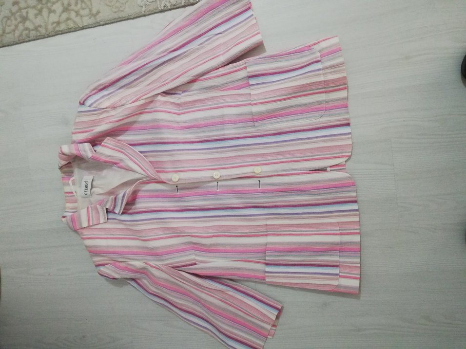 Pembe Çizgili Düğmeli Kadın ceket