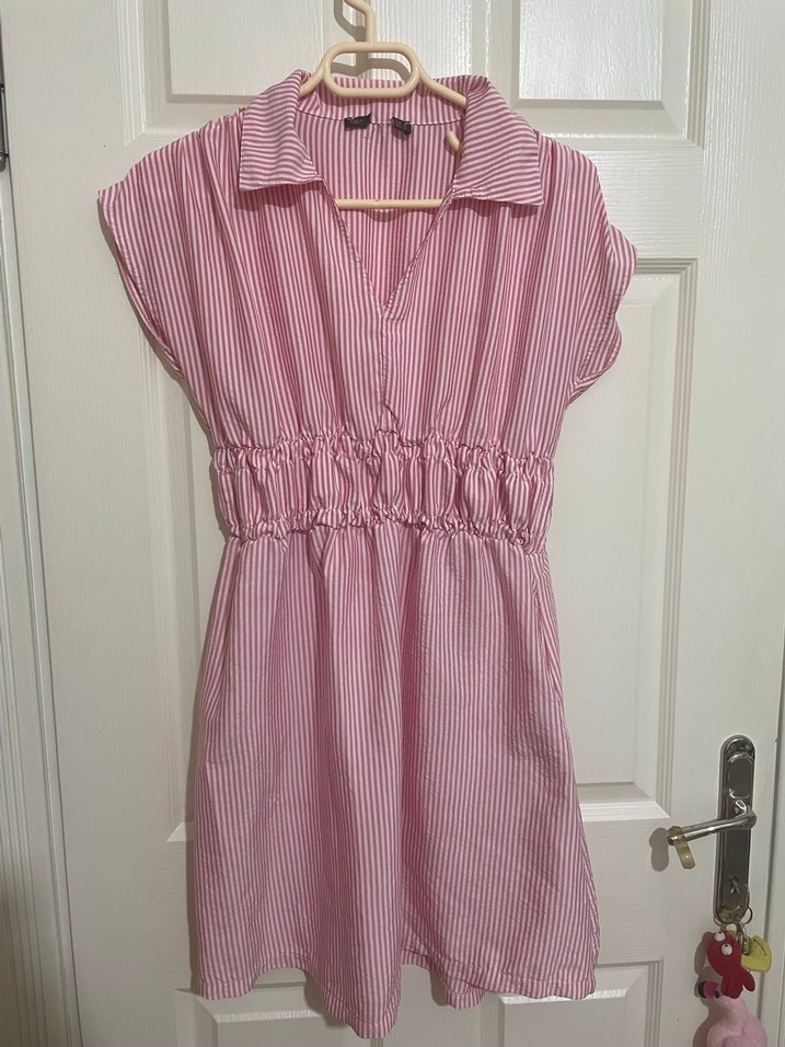 Pembe Çizgili Elbise
