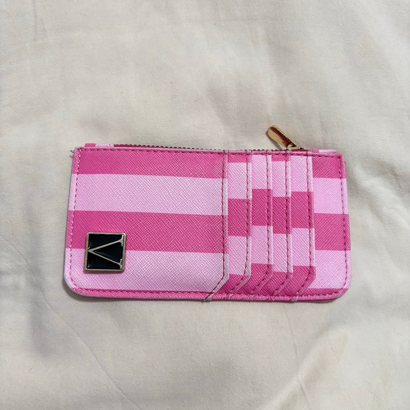 Pembe çizgili kadın cüzdanı, fermuarlı bölme ve çoklu kartlıklar içerir. Sentetik kumaştan yapılmıştır, gündelik ve sokak tarzına uygundur.