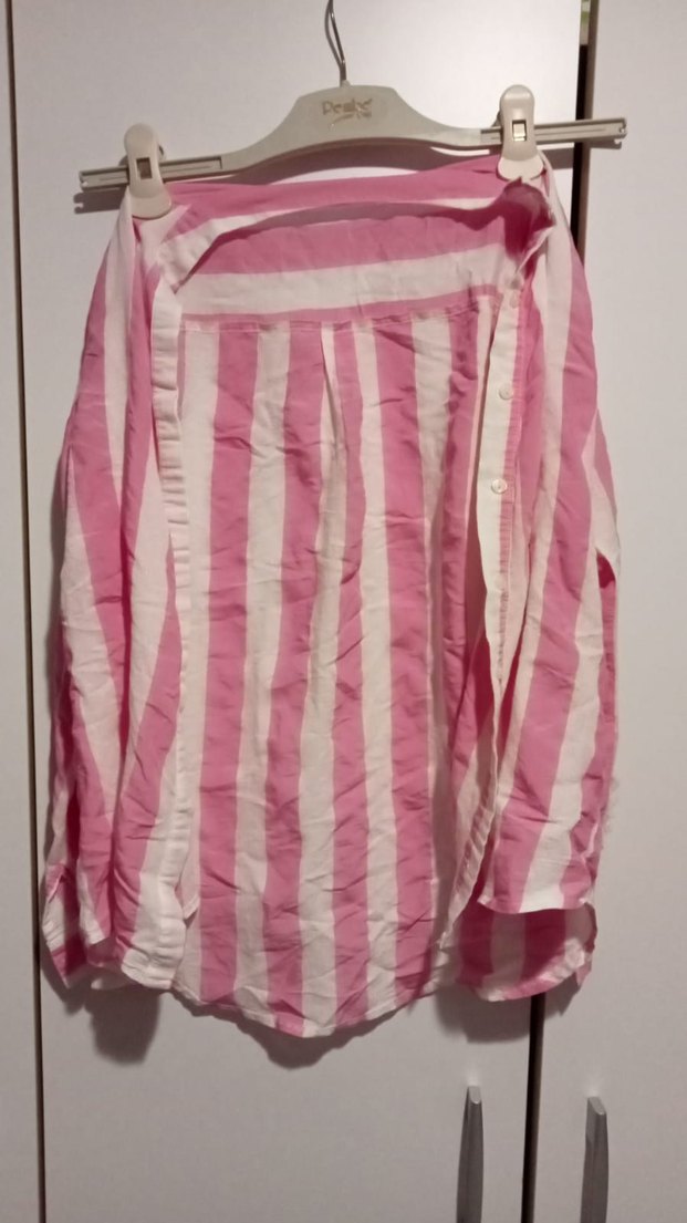 Pembe ve beyaz çizgili gömlek hiç giyilmemiştir sadece ütü ister