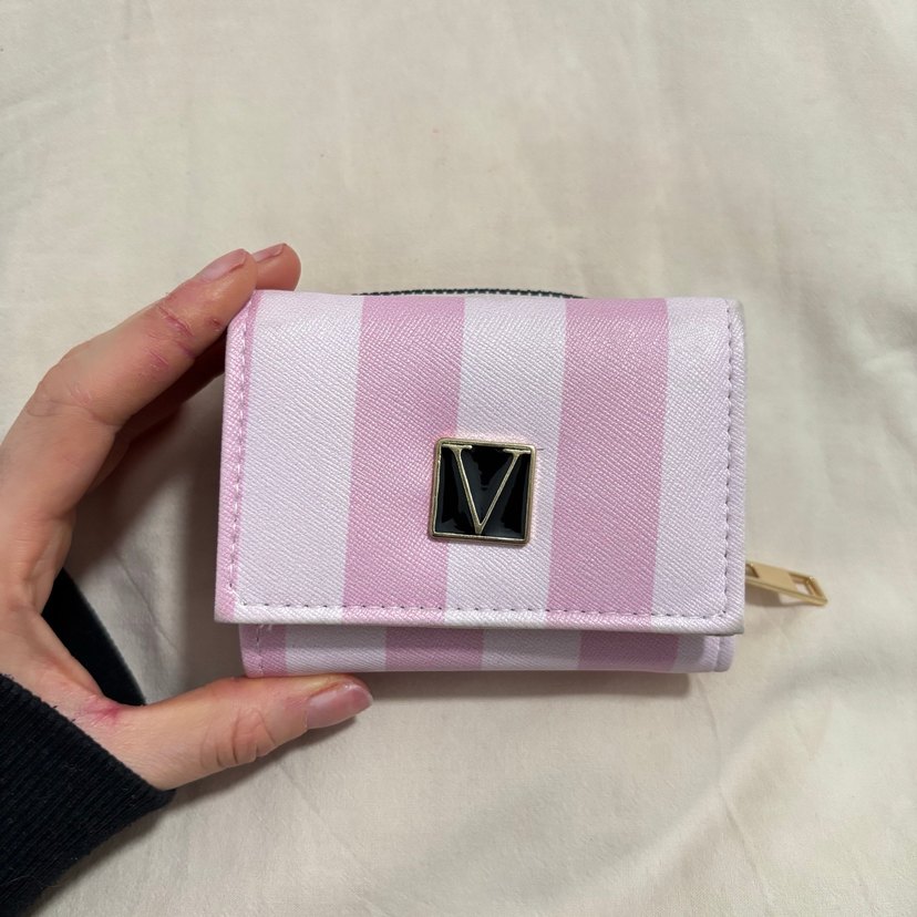 Bu kadın cüzdanı, pastel pembe ve beyaz çizgilerle ve fermuarlı kapanışla tasarlanmıştır. Sentetik kumaştan yapılmış olup, trend sokak modası ve günlük kullanım için uygundur.