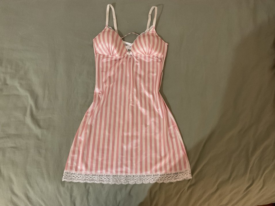 Pembe Çizgili Midi İnce Askılı Gecelik
