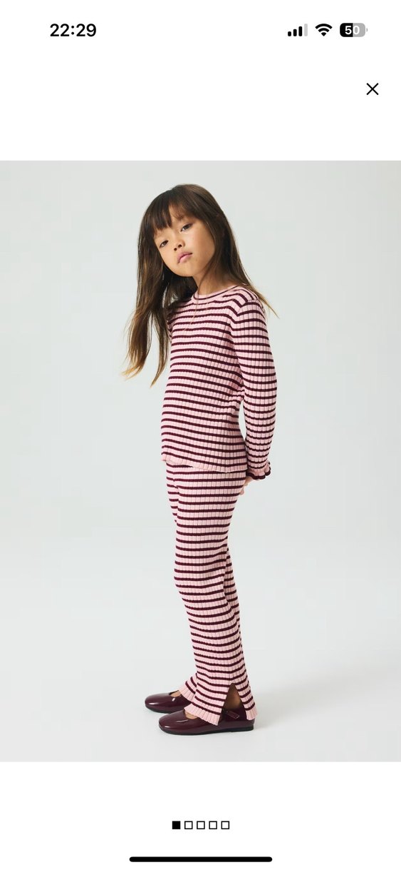 Yumuşak ve rahat pamuklu kumaştan, pembe çizgili çocuk takım. Nefes alabilir yapısıyla günlük kullanıma uygundur.