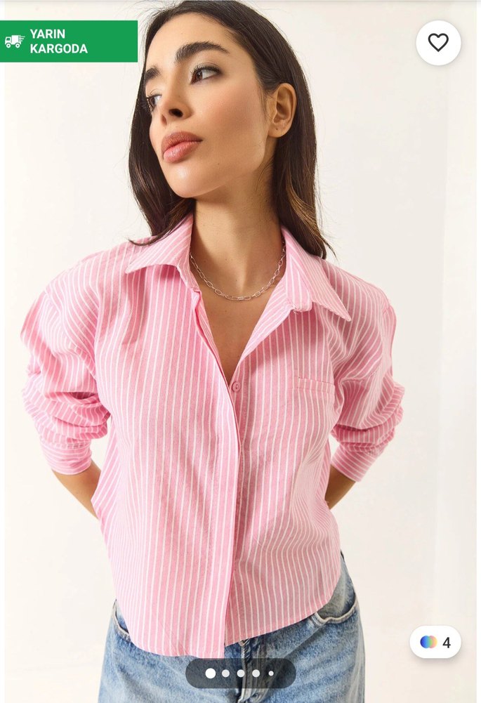 Pembe Çizgili Pamuklu Kadın Gömlek