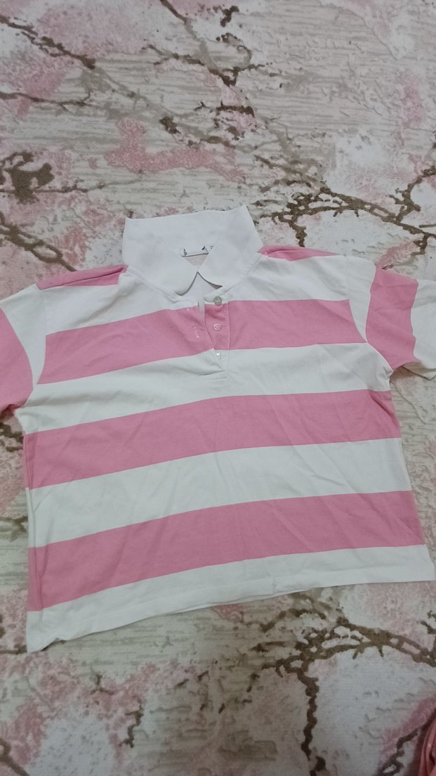 Pembe çizgili Polo Yaka crop