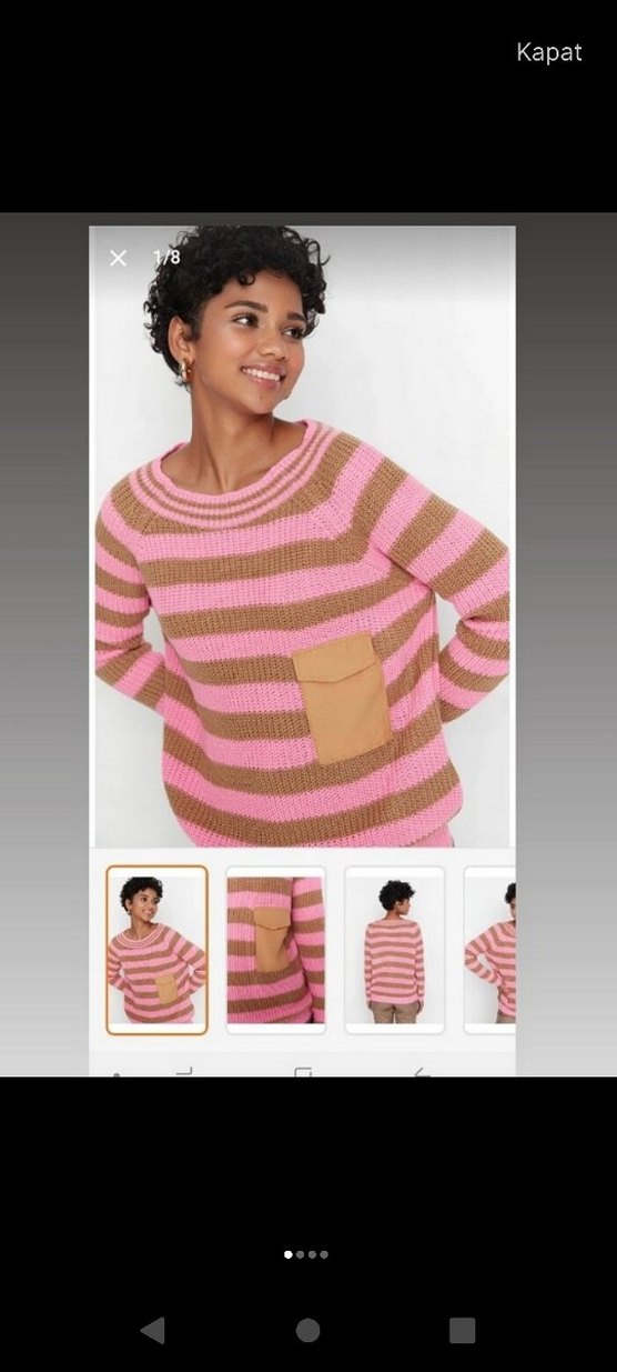 Pembe Çizgili Rahat Triko Kazak