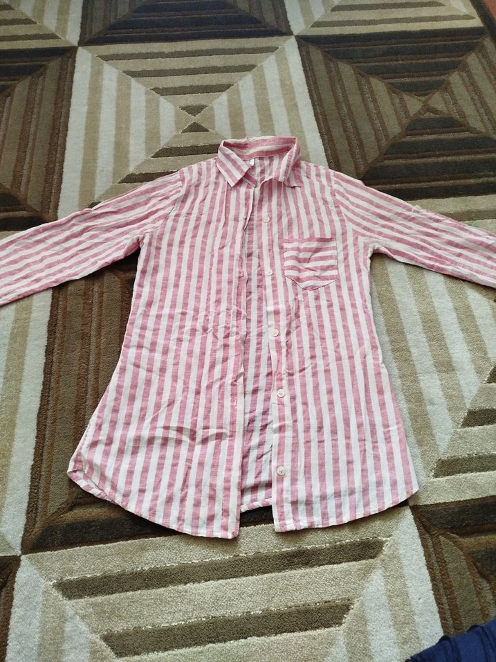 Pembe Çizgili Uzun Kollu Kadın Gömlek