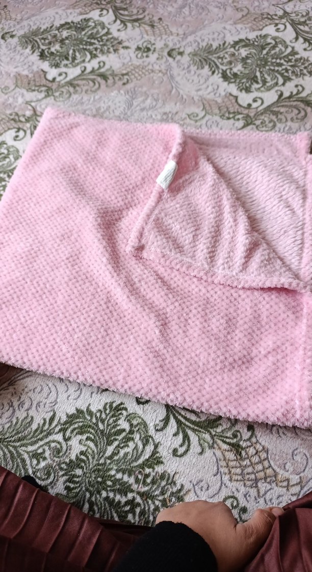 Pastel pembe renkte, desen içermeyen, yumuşak sentetik kumaştan yapılmış çocuk battaniyesi. ️kadifemsi dokusu vardır sayılı kullanıldı yepyenidir alıcısına hayırlı olsun