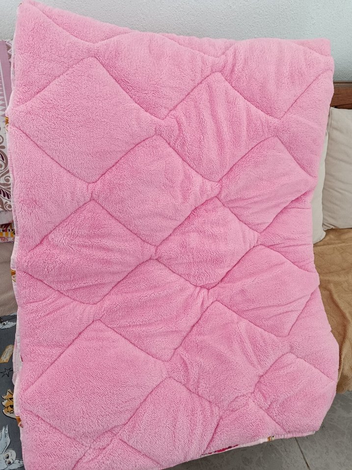 Yumuşak dokulu, kapitone desenli pembe çocuk battaniyesi. Çocukları sıcak tutmak için ideal. ️