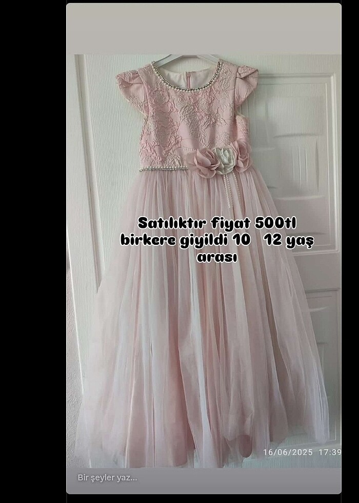 Pembe cocuk elbise abiye. Bir kere giyildi. Temizdir hasarsız. 10-12 yaş arasina uygundur.