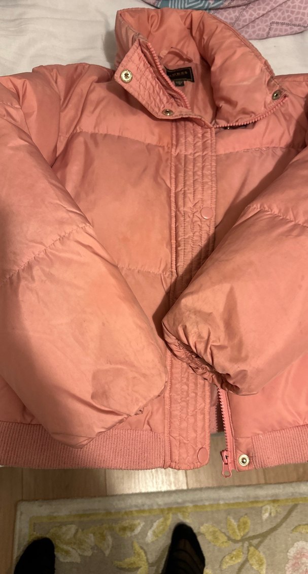 Pastel pembe renkte, fermuarlı, yüksek yakalı kadın kışlık mont. İnce kesim ve normal boyda, sıcak tutan yumuşak kumaşlı, şık dış mekan kullanımı için uygundur. ❄️