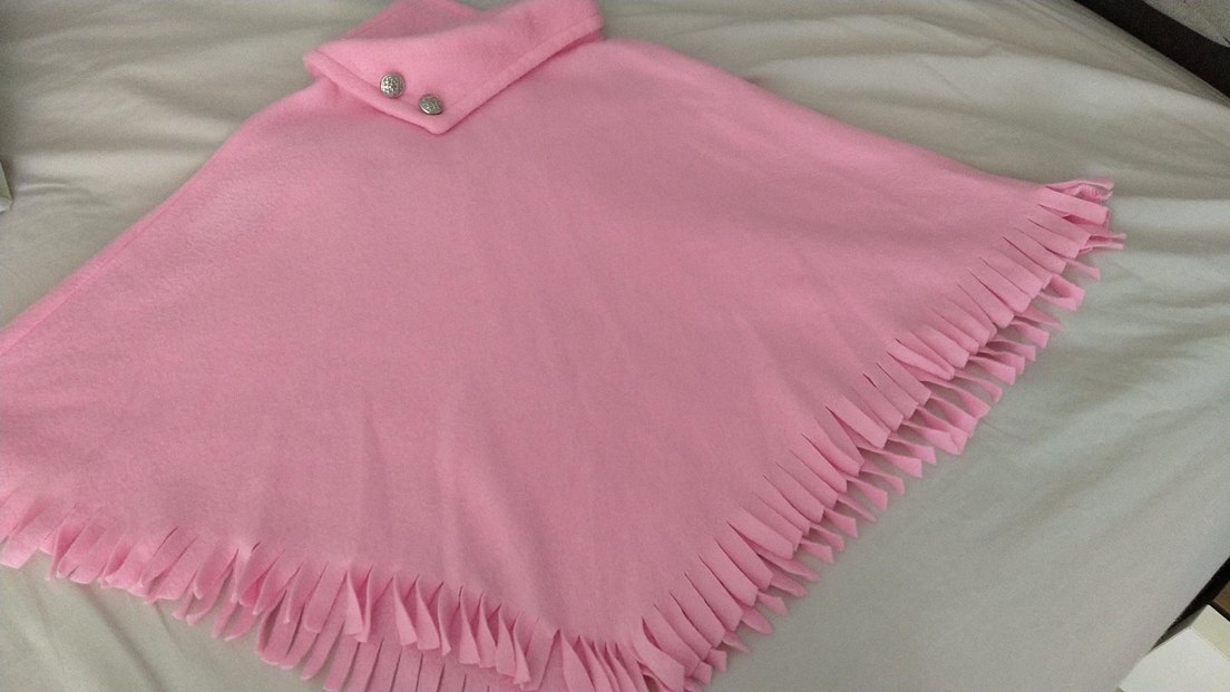 Pembe renkli, kolsuz pelerin, yakalı ve etek kısmında fırfır detaylıdır. Rahat kesimi ve yumuşak dokusuyla günlük kullanıma uygundur.
