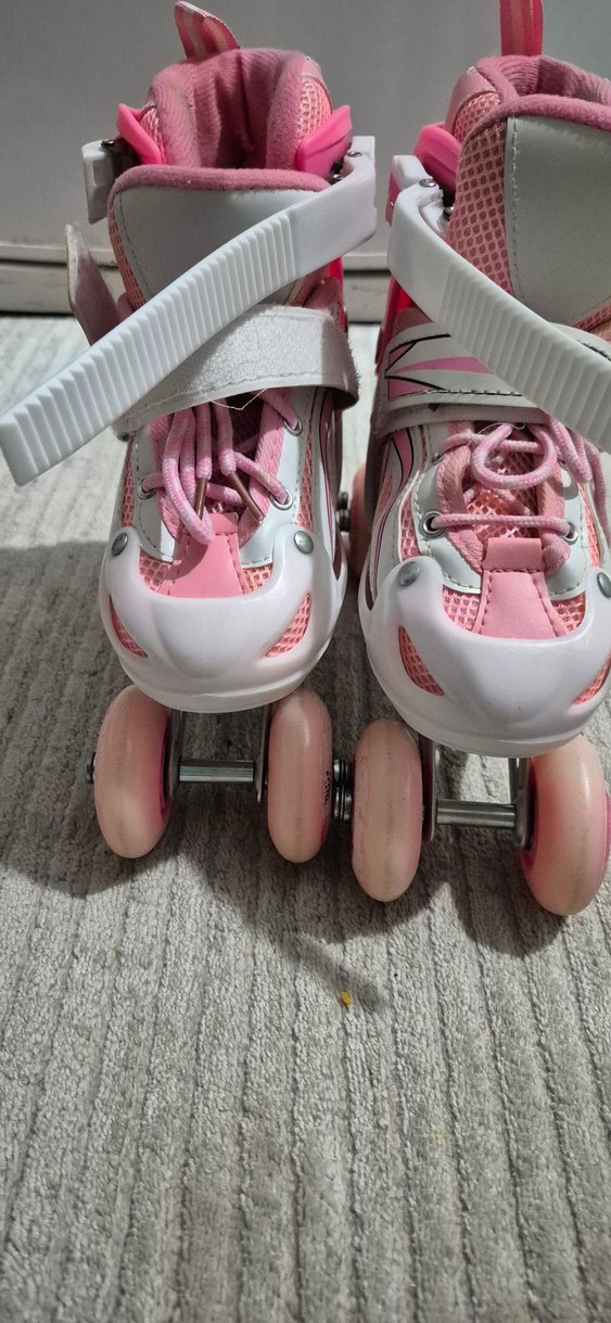 Pembe renkte, kauçuk tekerlekli cocuk pateni ayakkabısı, sportif ve athleisure tarzlar için uygun. detayları ve pastel renk ile şık görünüyor. ⛸️