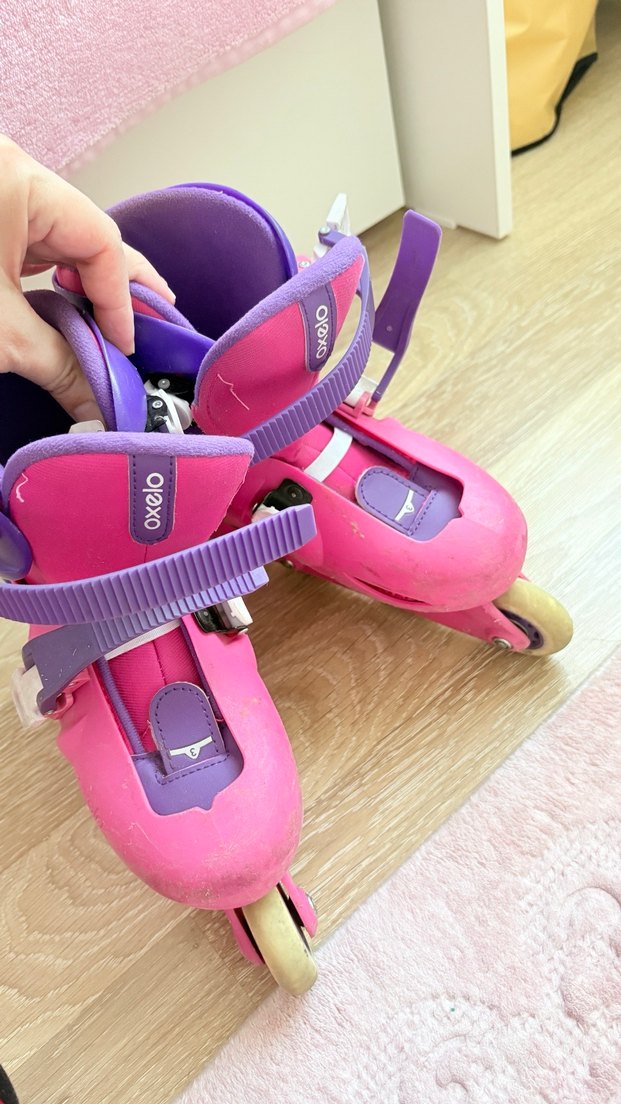 Ayarlanabilir bantlı ve renkli detaylara sahip pembe çocuk patenleri, rahat kayma sağlar. 33/34numara