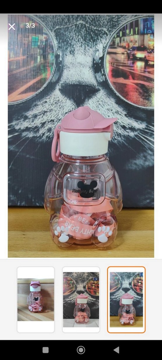 Pastel pembe renkte, sevimli ayı desenli çocuk suluk. Kolay içim için kapaklı ve hafif yapıda. renkler mevcut adet fiyatıdır