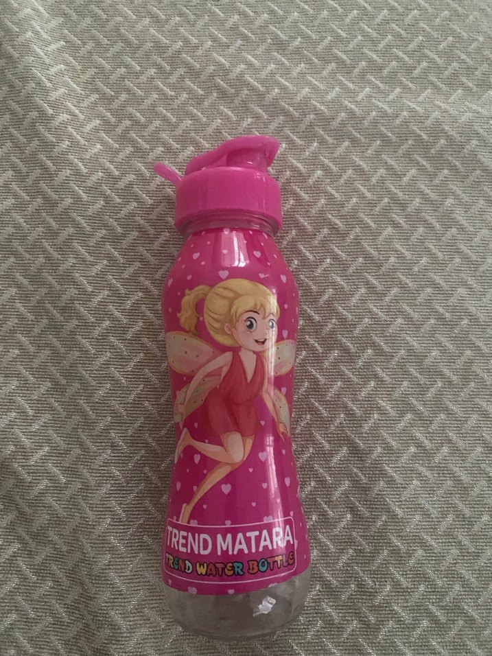 Pembe renkli, peri figürlü çocuk termos matara, güvenli açılır kapaklıdır. Üzerinde TRENDMATARA markası bulunur ucu az kırık dökülmeye engel değil .