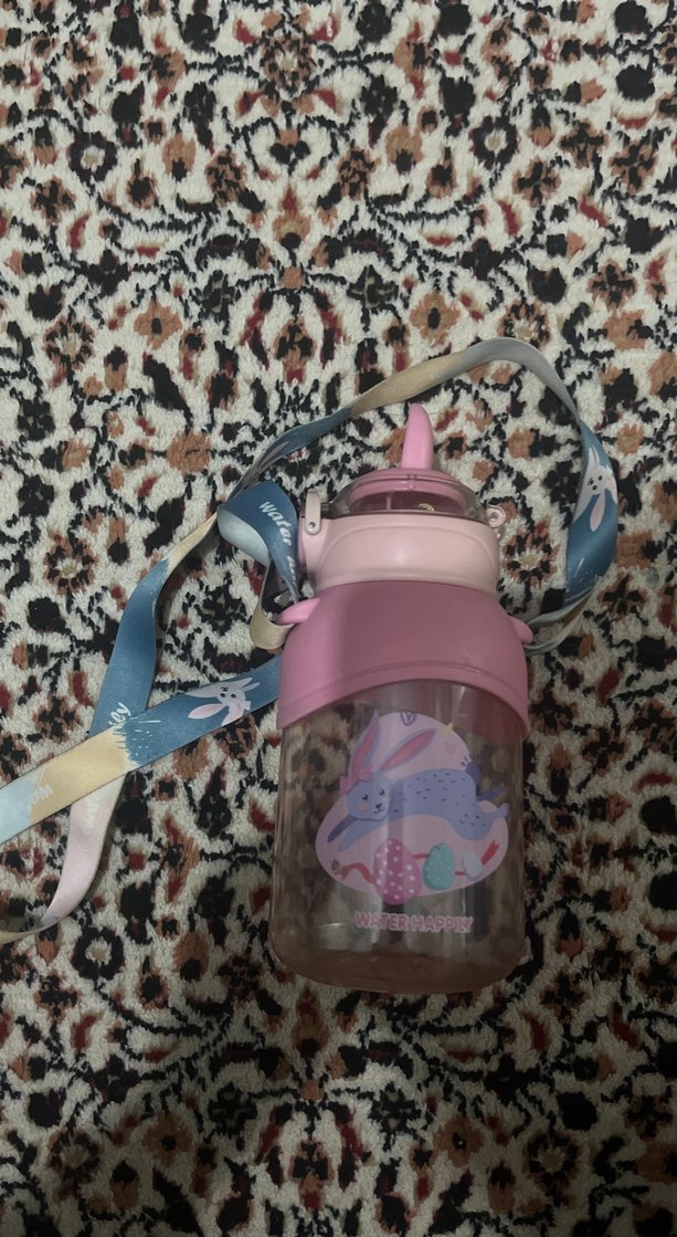 Pastel pembe renkte çocuk termosu, yumuşak pipet ve taşıma askısıyla birlikte gelir. Şeffaf gövdesinde sevimli tavşan baskısı bulunur.