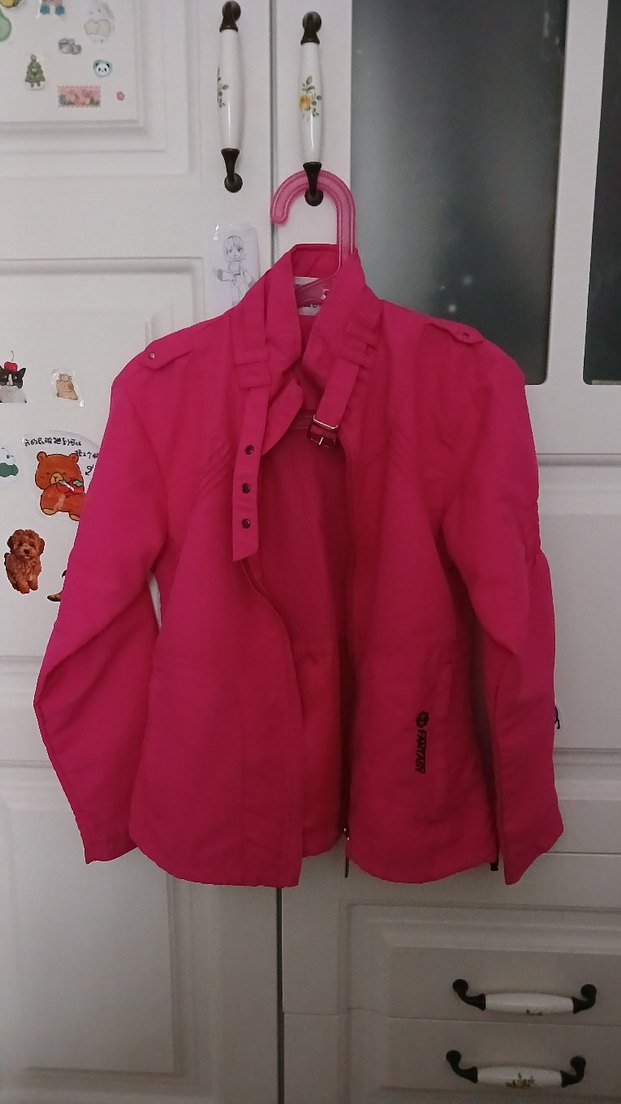 Pembe renkli, fermuarlı çocuk ceketi, uzun kollu ve normal midi boyda, günlük sokak stiline uygun.