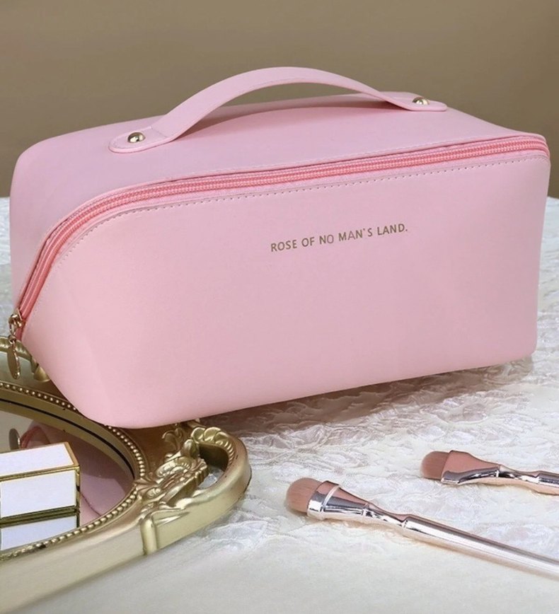 Pembe Çok Bölmeli Büyük Kapasiteli Kadın Makyaj Çantası