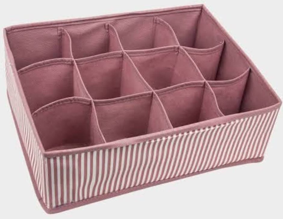 Pembe renkte, çok bölmeli dolap düzenleyici. Eşyaları düzenli tutar ve kolay erişim sağlar.