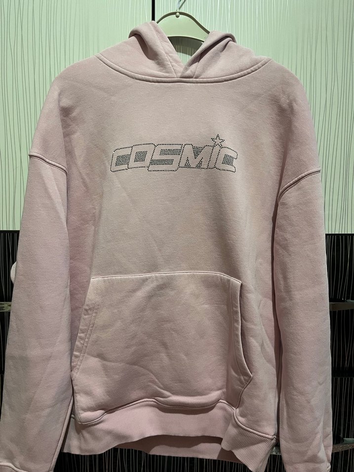 Pembe Cosmic Baskılı Kapüşonlu Sweatshirt
