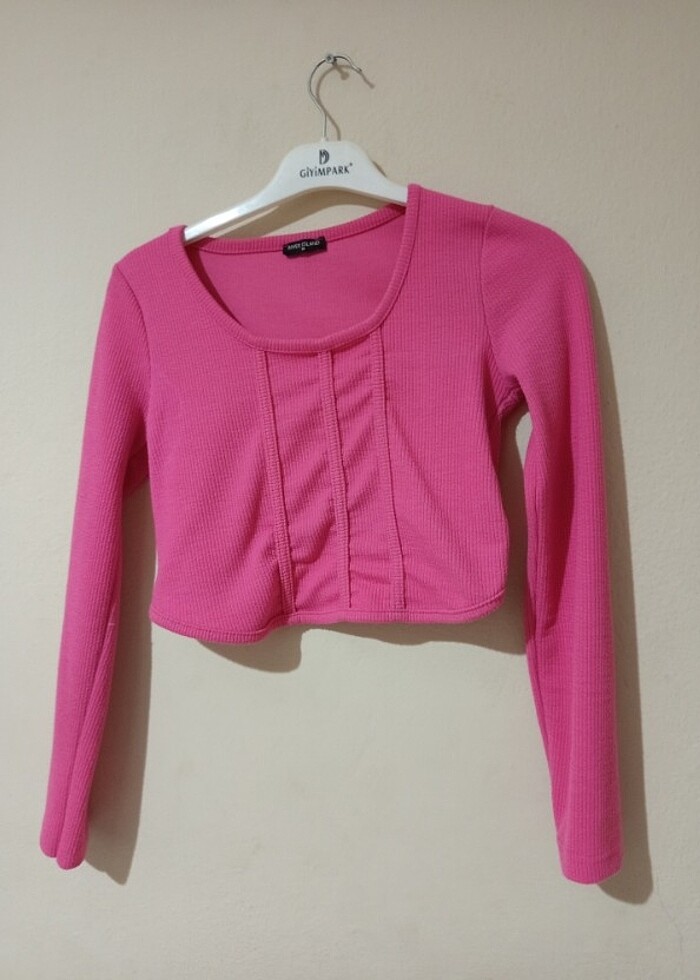 Az kullanılmış fitilli kumaş korse detayli pembe uzun kollu s-m bedenlere uygun crop