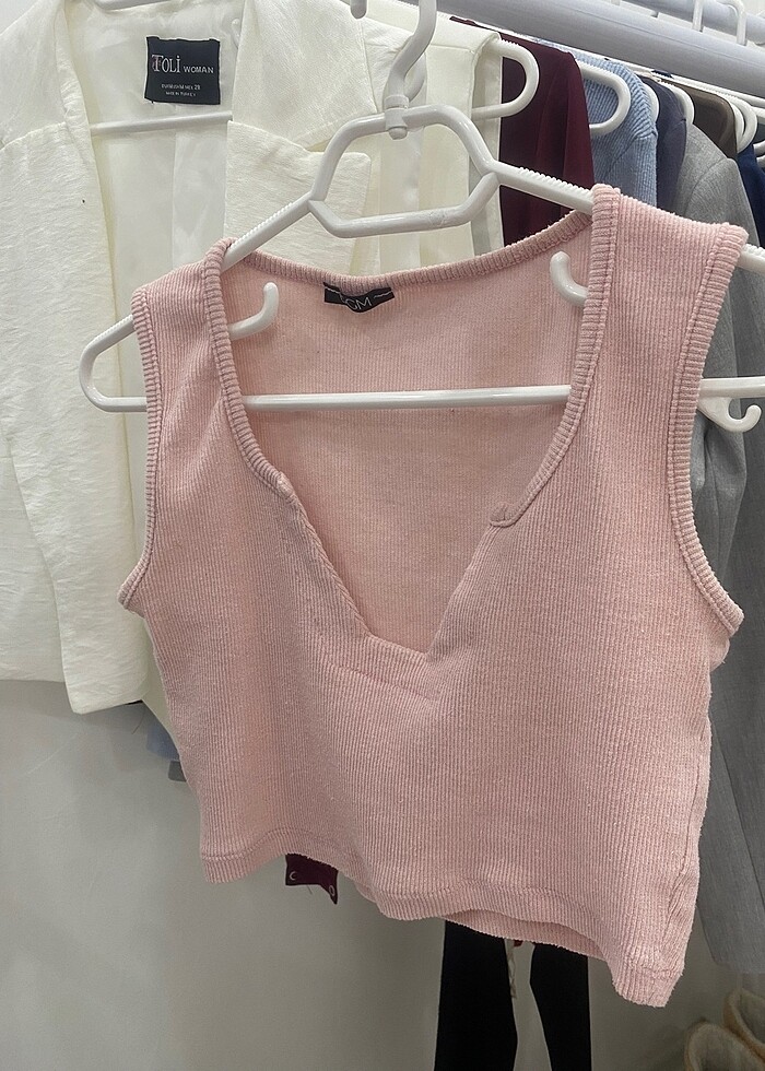 Pudra pembesi v yakalı crop S-M beden Esnek