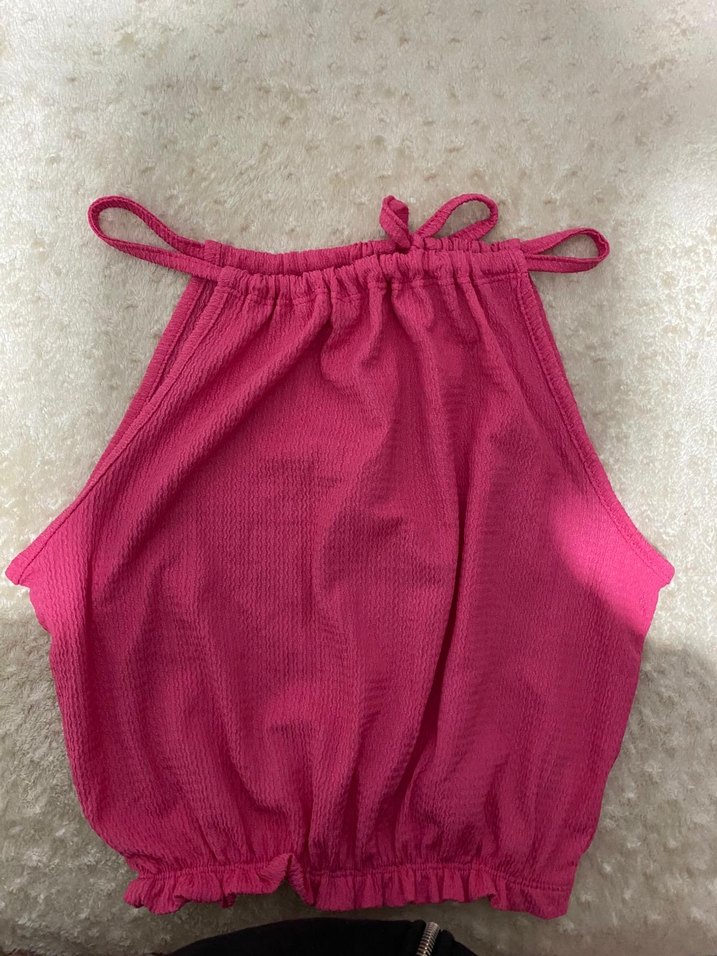 Pembe crop bluz belden Büzgülü boyundan Büzgülü rahat giyim
