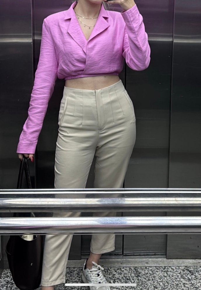 Pembe crop gömlek ceket