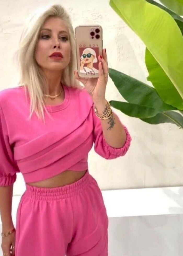 Pembe crop ikili takım YEPYENİ sadece bir kez giydim. Rahat ve şık