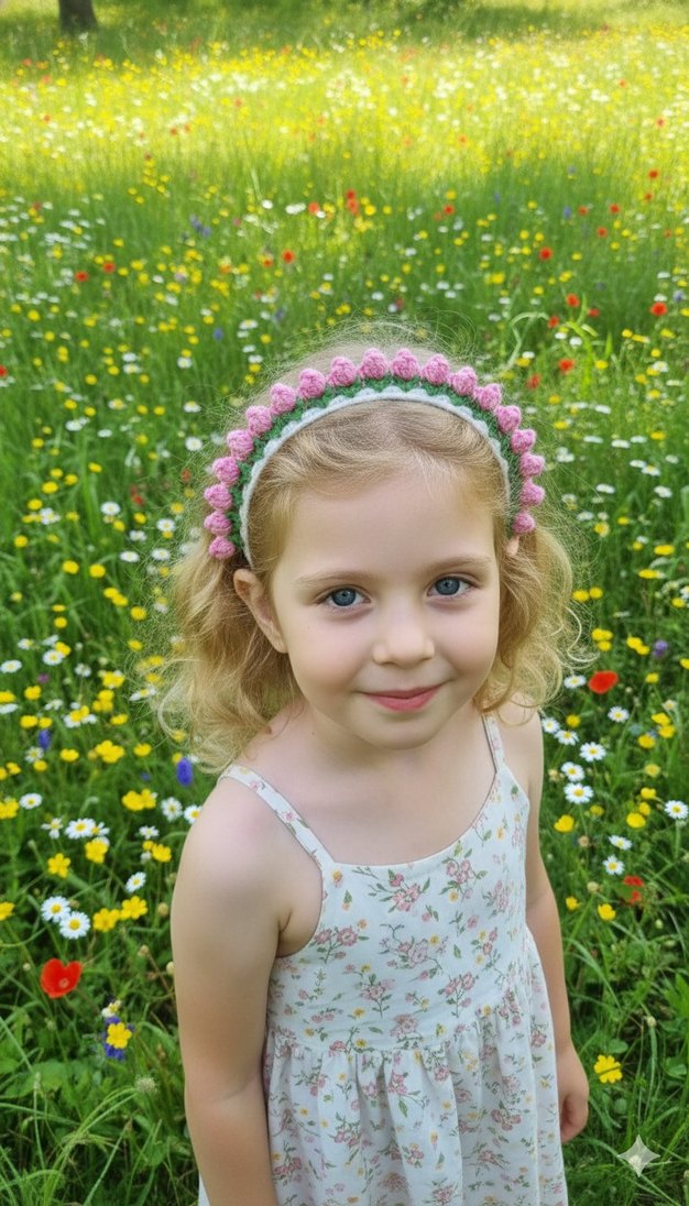 Bohem tarzda, pastel pembe lale desenli saç bandı, retro ve hippie görünüm için ideal.