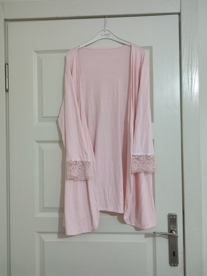 rengi pembe beden l- xl uyumlu kolları dantelli kumaş deformasyonu yok ancak etek ucunda silik bir leke var fotoğrafta mevcut o nedenle uygun fiyata ekliyorum pamuklu kumaştır yumuşak bir yapısı var