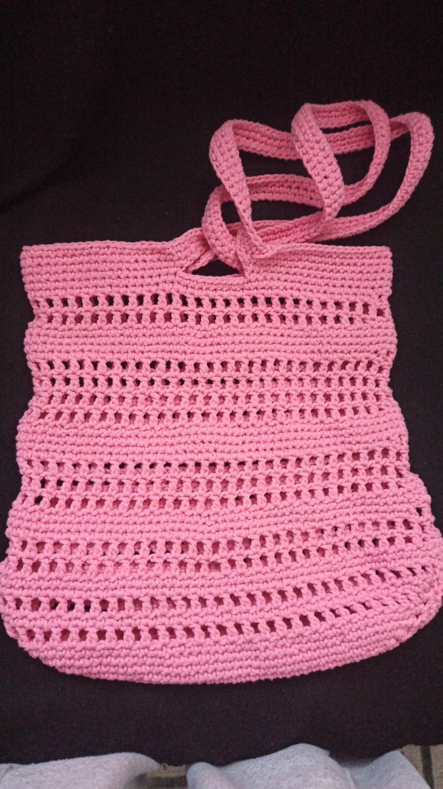 Pembe renkli, dantel detaylı örgü kadın çantasıdır. Sade, desensiz ve bohem tarzda, günlük kullanıma uygundur.