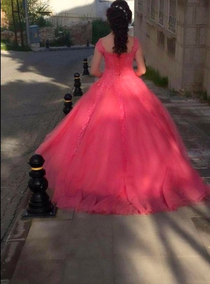 Pembe renkli, dantel detaylı ve parlak kumaştan uzun abiye elbise. Straplez yaka ve ince askılarla modern klasik ve şık bir görünüm sunar. S _ M beden uyumludur